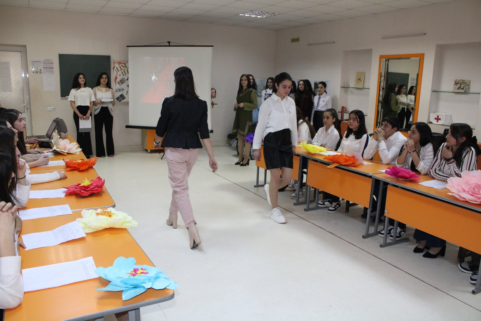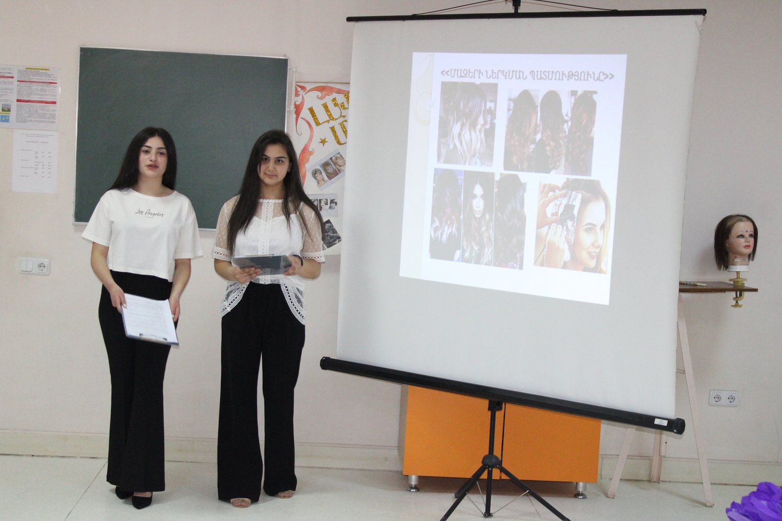On April 7, an open lesson-event entitled "Beauty and the frontier of fashion" was held at "Endanik" Children and Youth Creative Center dedicated to Motherhood and Beauty Day. Students of hairdressing art and clothing design groups as a result of cooperation made the event even more colorful with their works. The students of hairdressing art group presented the history of hair dyeing in different periods. The students, with the help of group leader Nina Yayloyan, gathered comprehensive information about the standards of hairdressing and beauty, which they presented through a video. Attendees received a lot of information from ancient times to the present day about the prevailing ideas about beauty and hairstyles, which became more vivid with pictures and videos presented with slides. During the open lesson, the modernity of the profession was emphasized at all times, the students were strengthened with the idea that the profession of hairdresser, in addition to being a craft, becomes an art in the hands of a skilled master and gives a wide opportunity to create. They did practical work, showing hairstyles in line with the clothes. The students of the clothing design group also presented their hand-made clothes and the secrets of fashion. "Clothes are complete when a harmonious hairstyle is chosen" ․ As a result of the cooperation of two groups, the students best presented their ideas of fashion and style, which included the look and style of all times.