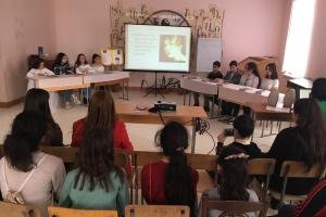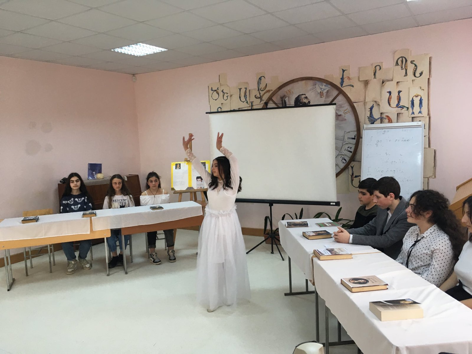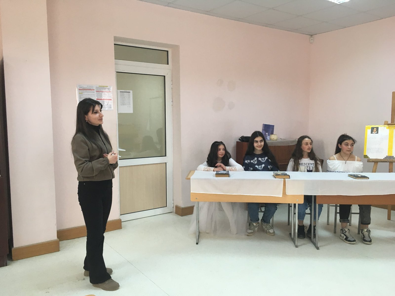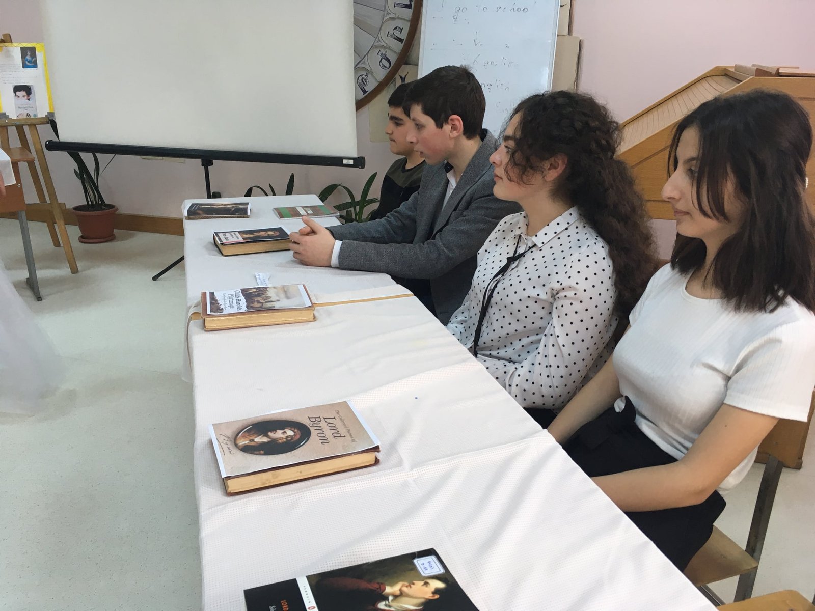 An open lesson entitled "The Greats of English Literature" took place on March 30 at "Endanik" Children and Youth Creative Center with the participation of the students of English language group. The aim of the open lesson was to present the works, recognition and fame of the famous writers of English literature, George Byron and Jane Austen, to instill in teenagers love for the most famous works of English literature, to promote the development of English oral speech, to enrich vocabulary.