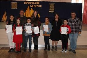 Dans le cadre du projet, la collaboration avec l'Union des écrivains et les centres arméno logiques, à son tour, a suscité de l'intérêt des adolescents envers la langue arménienne et a contribué au développement de la pensée linguistique. Le projet, démarré en mai, a été résumé au centre "Entanik" par un événement littéraire et artistique intitulée "Ancêtre doux" et l’exposition du concours créatif des travaux des ateliers d’art appliqué ont été organisés. Le directeur du centre, Arthur Minassian, a remis des diplômes d’honneur aux auteurs des meilleures œuvres, ainsi que les gagnants du concours créatif et les participants actifs ont visité le Monument l’Alphabet Arménien – bosquet des lettres et Saghmosavank, Maténadaran, l’église Mesrop Machtots d’Ochakan. Le projet a été résumé dans l'église St. Hakob Mtsbnetsi de Gumri avec une cérémonie accompagnée par l'harmonium "La prière d’Alichan adressé à Dieu".