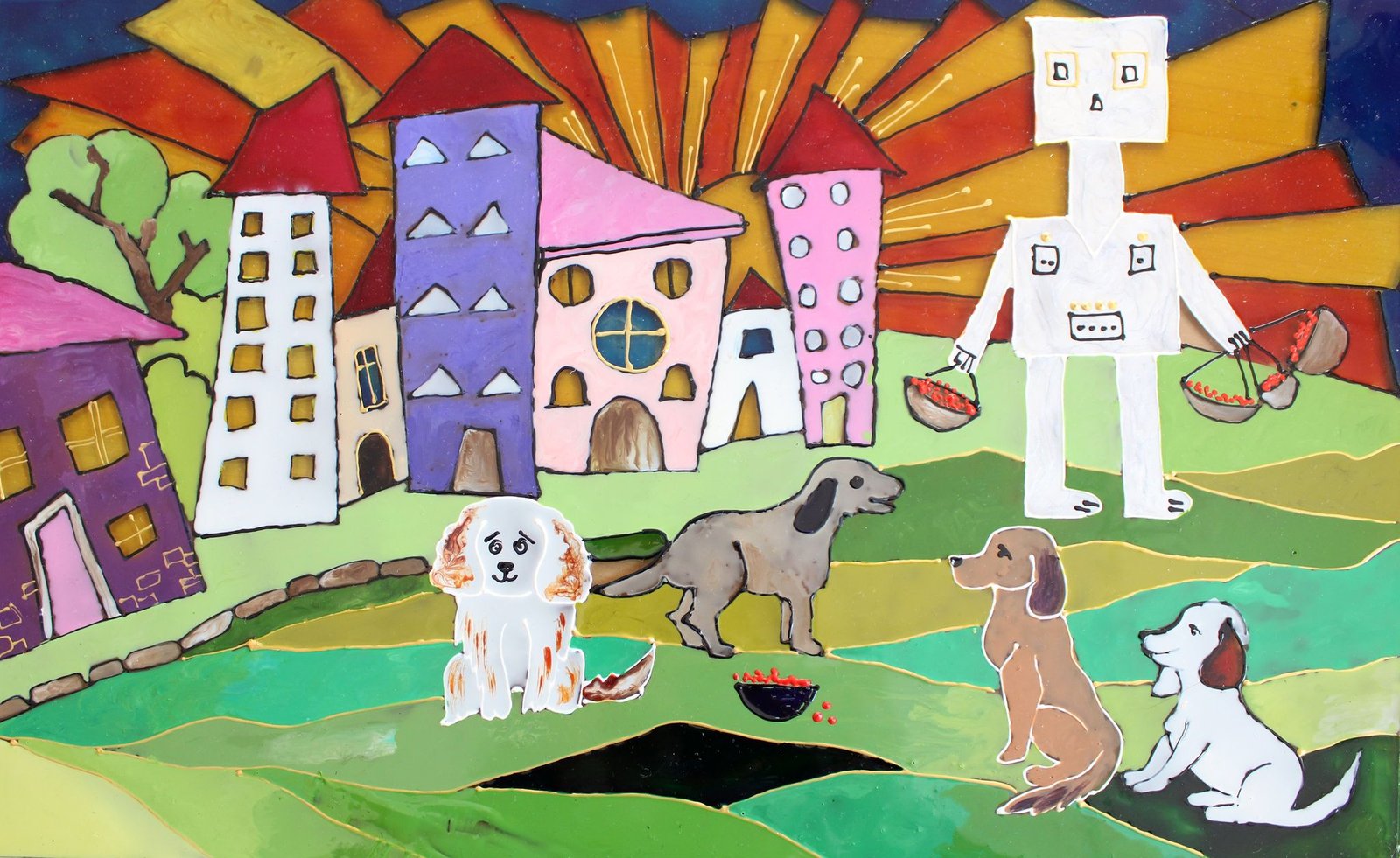 Anahite Manukian, coordinatrice des ateliers d'arts décoratifs appliqués du centre, présente les travaux du concours. Les travaux envoyés sont des robots qui aident les gens, en particulier l’œuvre présentée par l’atelier de batik nettoie l’environnement, celle de l’atelier de quilling s’occupe des fleurs, celle de l’atelier de peinture sur verre nourrit les animaux affamés, l’œuvre de l’atelier de gravure sur bois développe l'intellect des enfants, l’œuvre de l’atelier de couture s’occupe des enfants, celle de tissage de tapis présente un fileur de laine, l’œuvre de l’atelier d'orfèvrerie trouve les mines, celle de l’atelier de poterie est un robot-policier qui aide les gensʺ.