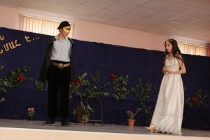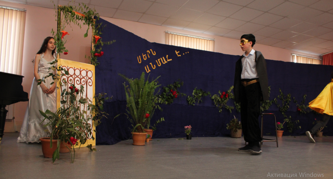 Անգլերեն լեզվի խմբակի սաները բովանդակալից ներկայացրին Շեքսպիրին՝ որպես դրամատուրգի, նրա ստեղծագործական ուղին ու գլուխգործոցները,պատրաստեցին տեսասահիկ, որտեղ հայ անվանի դերասանները ներկայացնում են շեքսպիրյան ստեղծագործությունները։ Խմբակի սաները բեմադրեցին հատված «Ռոմեո և Ջուլիետ» ողբերգությունից։ Վեր հանելով սիրո անմահ գաղափարը՝ իրենց խաղով հանդիսատեսին ցույց տվեցին, որ աշխարհում կա մի բան, որ չունի ո'չ սահման, ո՛չ էլ վերջ, և հենց դա սերն է։ Սերն անմահ է, այս մոտեցմամբ սաներն հայտնի ողբերգությունը՝ սիրո երջանիկ ավարտով մատուցեցին։