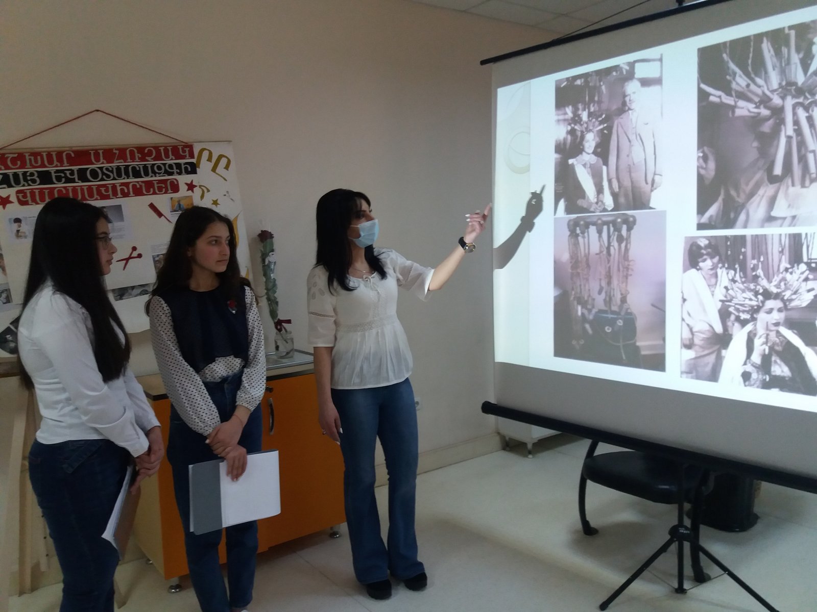 Կենտրոնի «Վարսավիրական արվեստ» խմբակի սաներն ու մանկավարժ Նինա Յայլոյանը ներկայացրեցին հետաքրքիր և համապարփակ տեղեկատվություն վարսավիրական արվեստի և գեղեցկության չափորոշիչների մասին: Ներկաները հարուստ տեղեկատվություն ստացան հնագույն ժամանակներից սկսած մինչև մեր օրերում ընդունված գեղեցիկի մասին իշխող պատկերացումների ու սանրվածքների մասին, որոնք ավելի պատկերավոր դարձան սահիկաշարով ներկայացվող նկարներով ու տեսանյութերով։