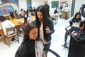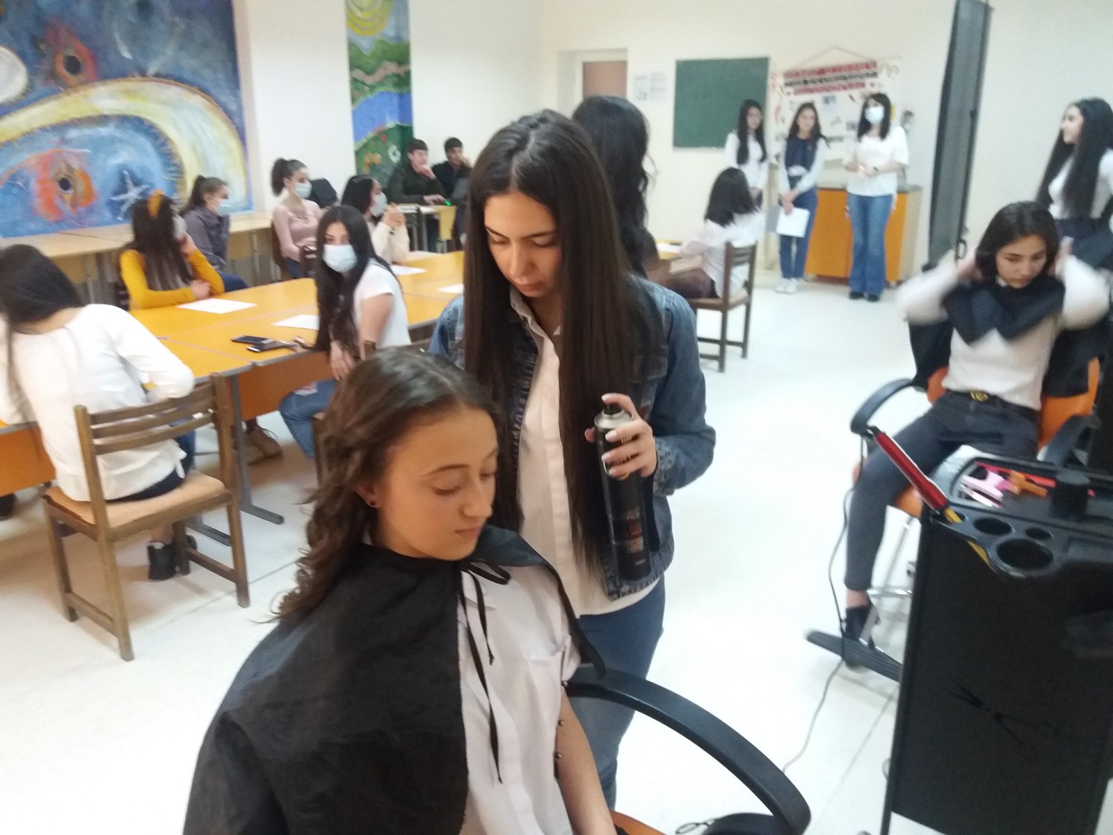 Հաջորդիվ սաներից մի քանիսը կատարեցին գործնական աշխատանք՝ ցուցադրելով սանրվածքների ոճային նմուշներ։
